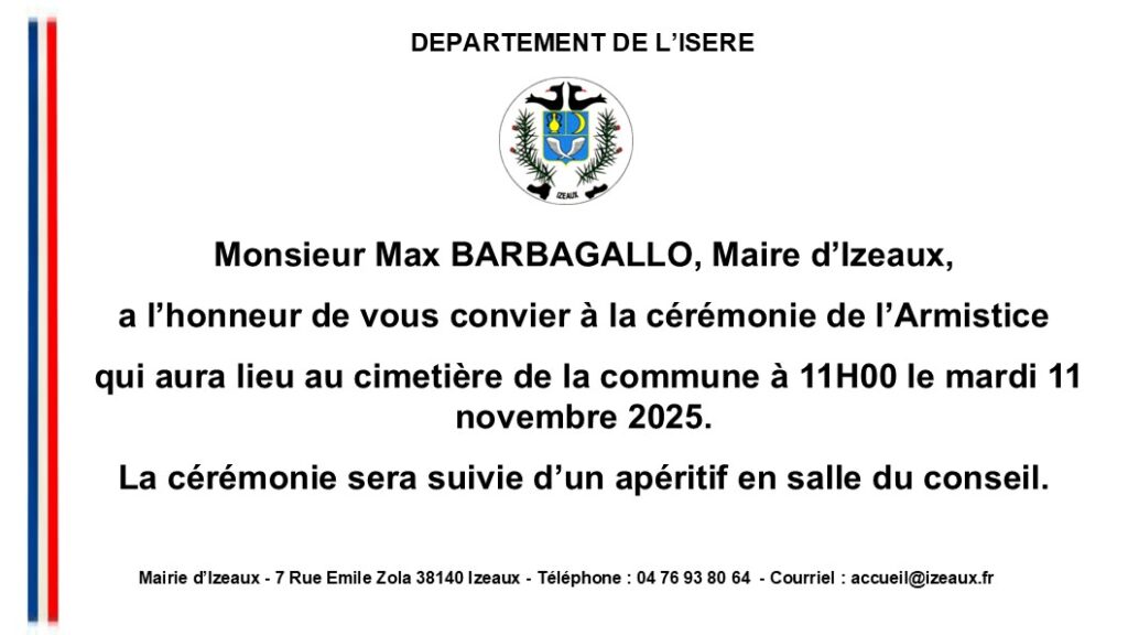 Monsieur le Maire et l’ensemble du Conseil Municipal vous invitent à assister à la cérémonie du lundi 11 novembre 2024 :