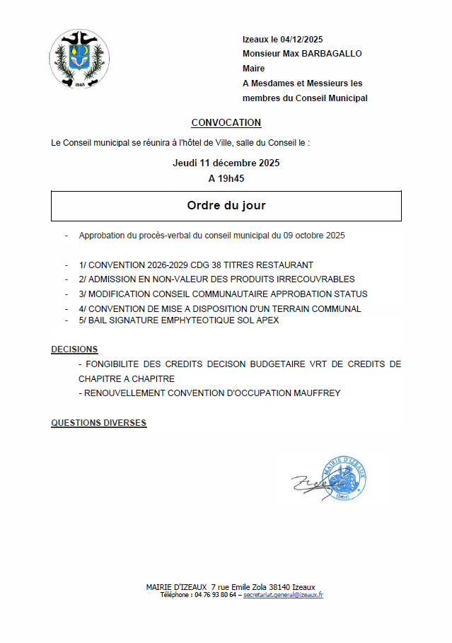 PROCHAIN CONSEIL MUNICIPAL